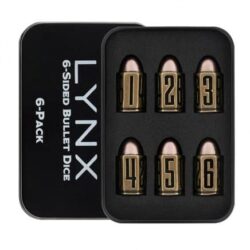 Bullet Metal Dice Set – 6 Brass D6 Dice – Ideal for DND, Warhammer 40k, Role Playing Homebrews, D&D. The perfect RPG gift for DnD, for example.