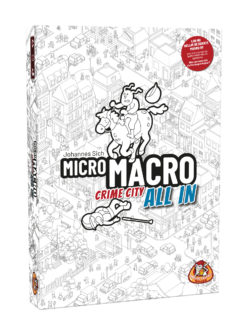 All In is the third part of the MicroMacro: Crime City series. It is a standalone game and some of the stories from parts 1 and 2 are continued in this part. The 16 crimes in this game can be played without having played part 1 or 2.
