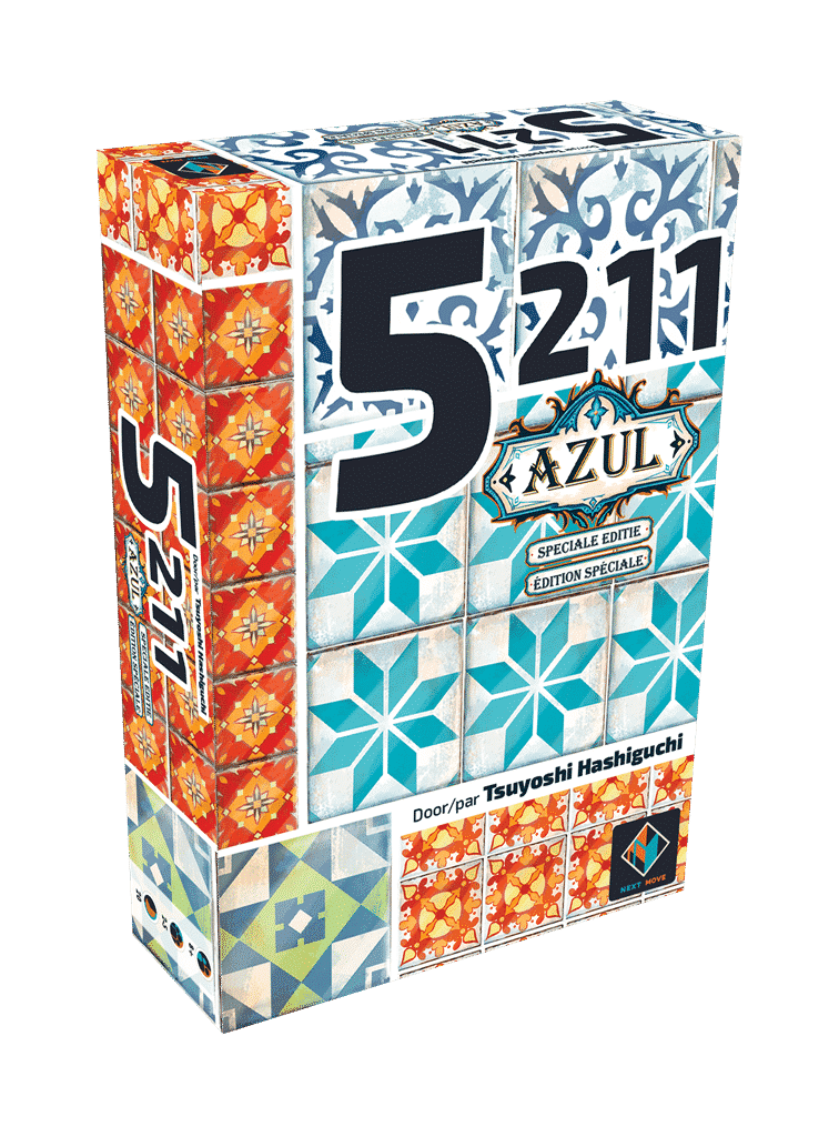 Special Azul edition of the fast and exciting bluffing and strategy game 5211, now completely in Azul style.