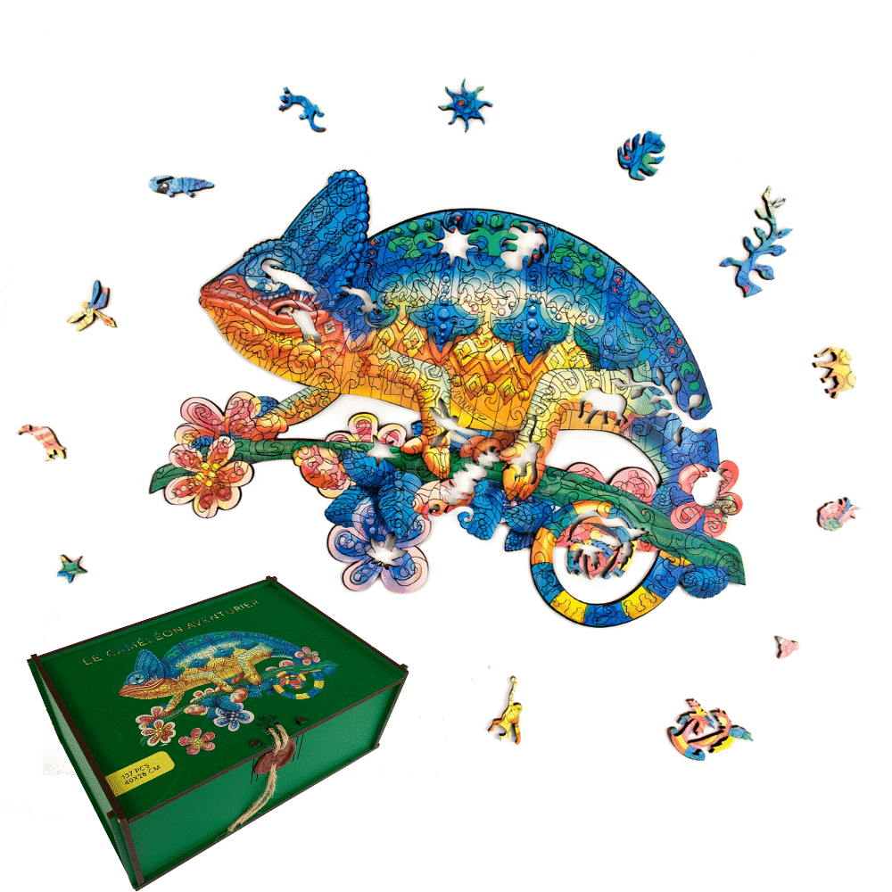 The adventurous chameleon is a characteristic inhabitant of the forest. Its colors will surprise you. He walks a lot, he is a real adventurer. The chameleon is ready to share his adventures with you. You just have to put it all together.
