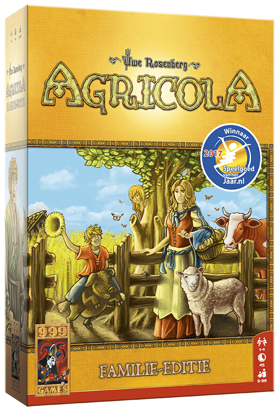 Very accessible version of the well-known strategic board game. This simple version of Agricola contains no cards, making the game very suitable for less experienced players. This makes it an excellent stepping stone to the more challenging basic game. Also in this version of Agricola you develop your farm in different areas: house and family expansion, subsistence, agriculture and livestock farming. All actions and investments are indicated with clear symbols. This makes the game easy to learn and allows you to immerse yourself even better in your agricultural role. Each round you deploy your family members on different actions. The more family members you have, the more actions you can do. However, you also have to feed them all. Because all aspects of farming earn points, you have to divide your attention well! Who ultimately has the most valuable farm?