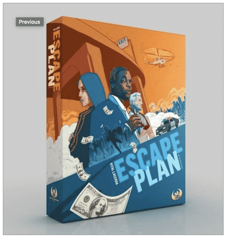 In Escape Plan, players are the thieves, but they may influence the cops' moves every turn. The robbers move on a modular board trying to reach the best spots to recover their loot and escape from the city with more money than the other thieves. The cops are trying to thwart their escape plan Ñ by force if necessary. The players play cards to aid their escape and slow the other players down. The players take actions that allow them to move and to engage gangs, mules, and snitches.