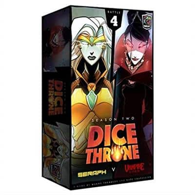 Dice Throne is a game of intriguing dice, tactical card play, powerful heroes, and unique abilities. Dice Throne: Season Two introduces a roster of new heroes and intriguing new matchups like The Vampire Lord vs Seraph. This is a stand alone game supporting 2 players. Additional heroes required to play with more than 2 players.