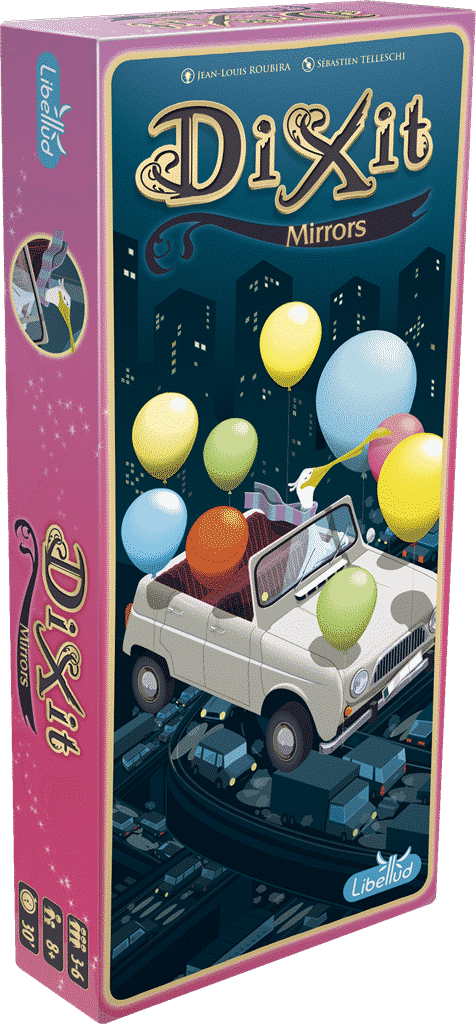 Dixit Mirrors is an expansion set for the game Dixit and contains 84 new playing cards. Combine the cards from this expansion with those from the basic game for a more extensive game. The game ends when the first player reaches 30 points on the scoring track.