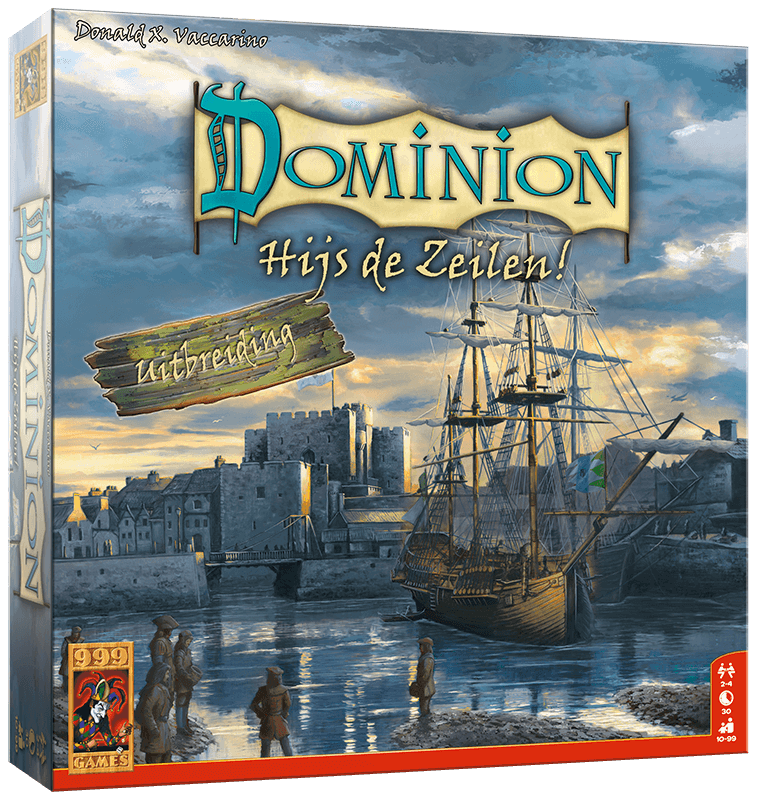In this extensive expansion, players choose to explore the open water. Dominion: Set the Sails contains 26 new kingdom cards, money and embargo tokens, and various tables to keep track of the consequences of reaching an island or deploying pirate ships. Furthermore, this expansion introduces sustainable cards, which remain in the game for one turn longer and can therefore provide even more benefits for the active player.