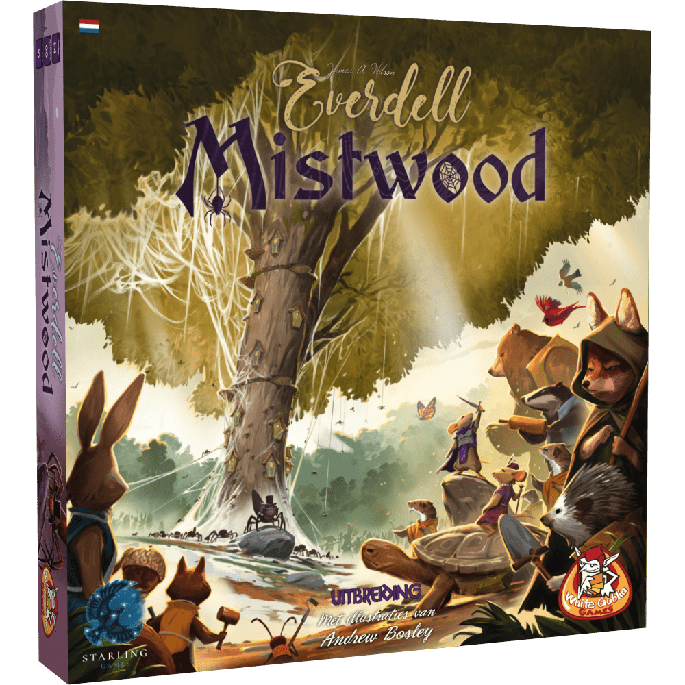 Mistwood is een uitbreiding voor Everdell. Je kunt het spelmateriaal van Mistwood toevoegen aan het basisspel van Everdell en eventuele andere uitbreidingen. Ook bevat Mistwood een uitdagende variant voor zowel solo-spelers als 2 spelers: Nightweaves schuilplaats.