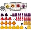 The Potions and dice are custom designed and produced and are beautifully transparent, compact to carry and of excellent quality!