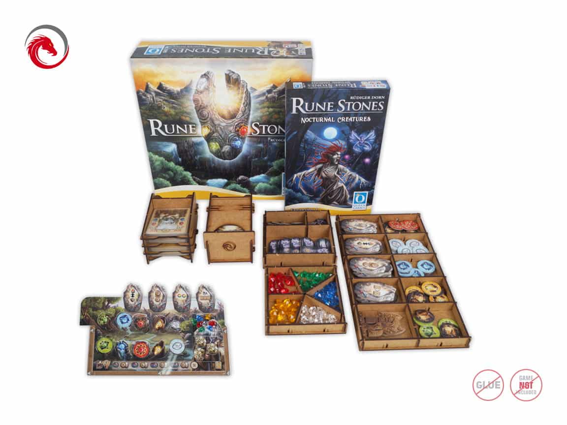 e-Raptor Insert compatible with Rune Stones and the expansion is a perfect accessory designed to organize and improve gameplay of the board game. No more mess on the table while playing. No more looking for necessary elements during the game.