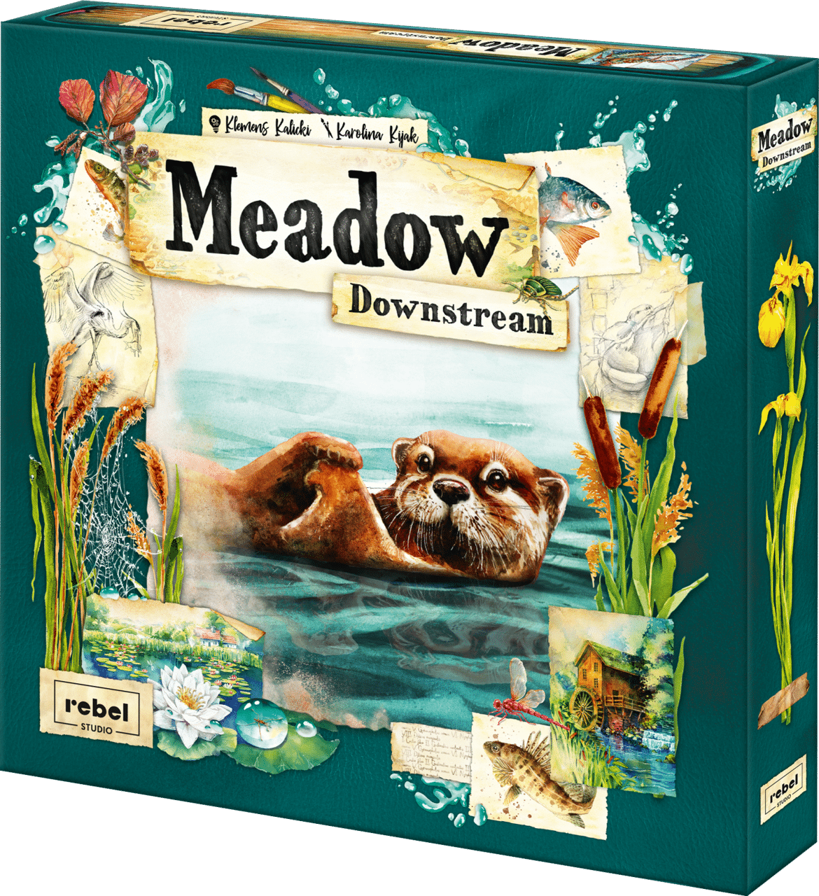 Meadow: Downstream includes more than 80 new cards depicting wildlife living in aquatic environments and a new thematic envelope to explore. The kayaking mechanic allows players to score extra points by moving down the river. Adjust the level of competition with a double-sided river board. Choose between a rapid stream and a calm river to explore two faces of nature.