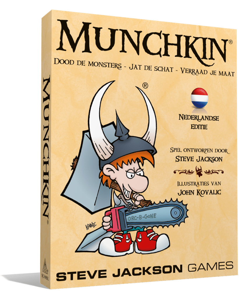 Hilarious, full-color, Dutch version of the funny, famous card game Munchkin. Good for evenings of fun. You start as a level one human with no class. But as the game progresses you can turn into a dwarf, elf, priest, magician or thief. Fight monsters, conquer the treasure and also take the treasure from your teammates. Anything to get to level ten and win the game is allowed... This reprint edition with 168 full-color cards from 2016 is of course compatible with all other Munchkin editions.