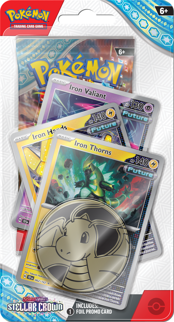 Daal af in een wereld onder de oppervlakte en ontdek de ware potentie van het Terastal fenomeen! De Legendarische Pokémon Terapagos bestijgt samen met Cinderace ex, Lapras ex en Galvantula ex de troon. Ze beschikken allemaal over briljante nieuwe krachten als Stellar Tera Pokémon ex. De pas ontdekte Hydrapple ex leidt nog meer Pokémon ex de strijd in en ACE SPEC-kaarten blijven het spel opschudden in de uitbreiding Pokémon TCG: Scarlet & Violet – Stellar Crown!