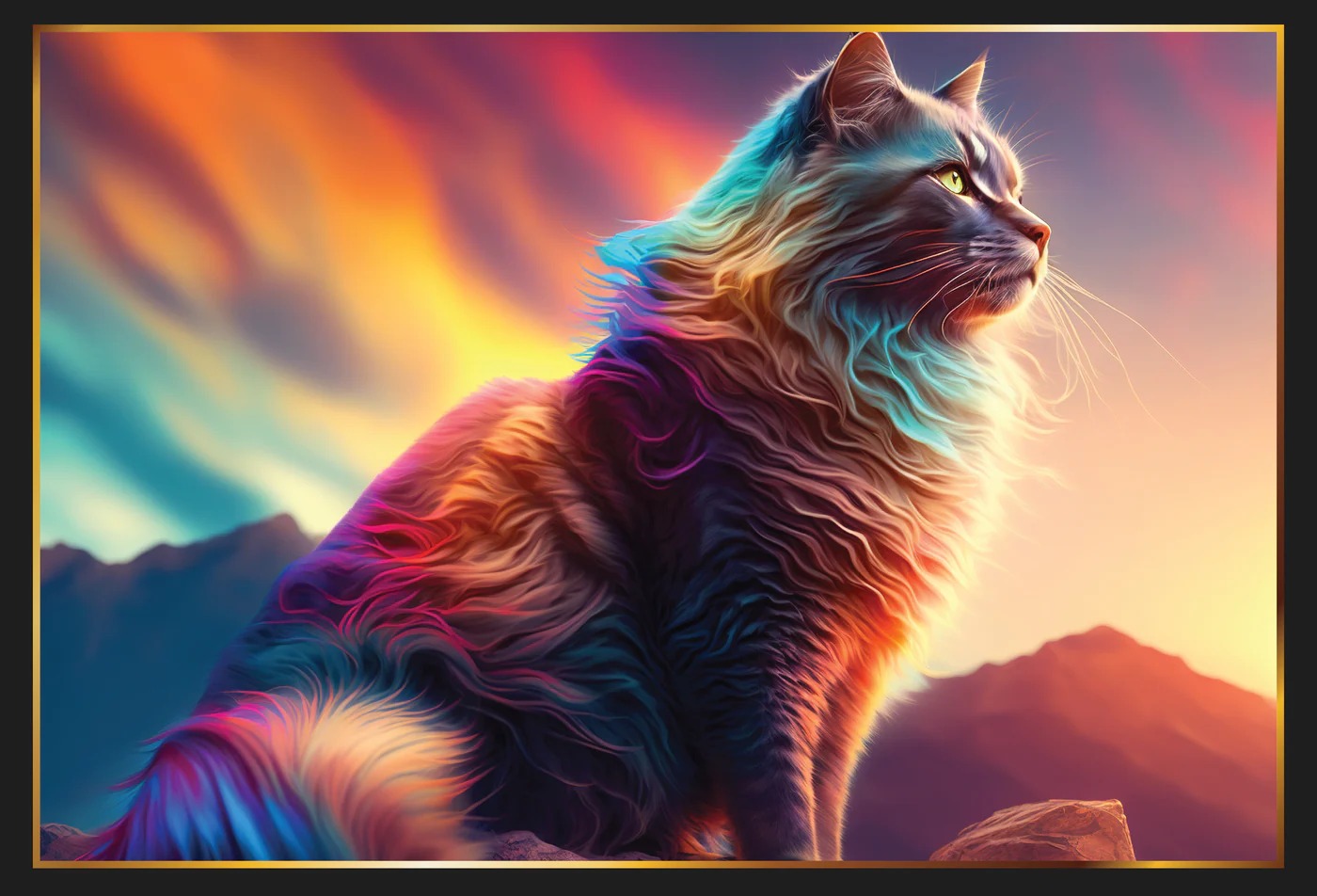 The Cat on the Rock puzzle is a beautiful puzzle of 1000 pieces that is suitable for anyone who likes a challenge. It's a must-have for cat lovers who want to add a splash of color to their puzzle experience. It is a unique design with a beautiful long-haired cat standing on a hill, with yellow and orange colors in the background reminiscent of the Northern Lights.