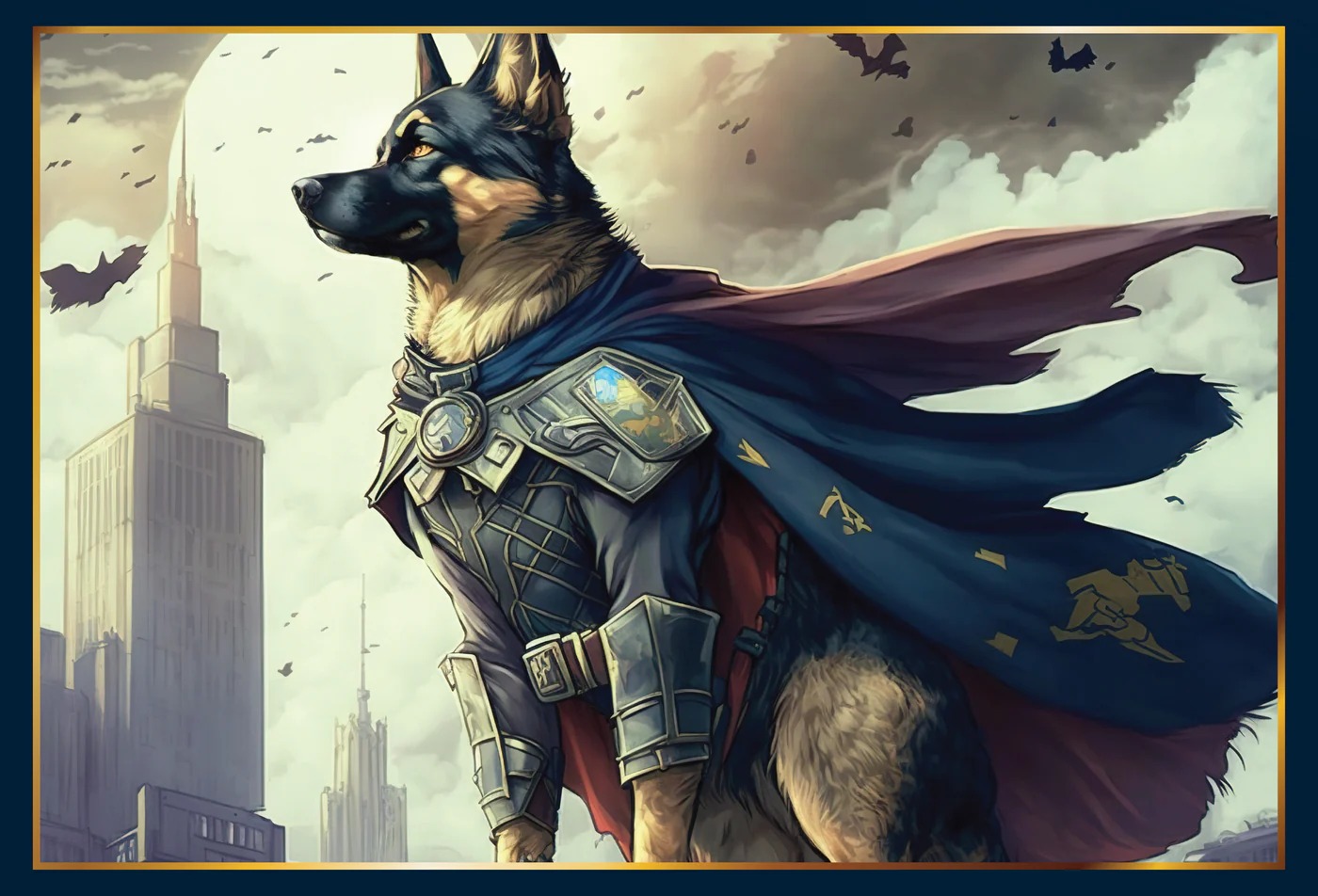 Get ready for an exciting and heroic adventure with this Superhero Dog, the latest addition to our collection of colorful jigsaw puzzles! This 1000 piece puzzle takes you to a world of superheroes and adventure. It shows a German Shepherd superhero sitting on top of a building overlooking a beautiful city skyline. The superhero is dressed in a tight cape and armor that reminds you of the Dark Knight himself. And if that's not enough, you'll also see bats flying around in the background, while the moon casts a nighttime light on the city skyline.