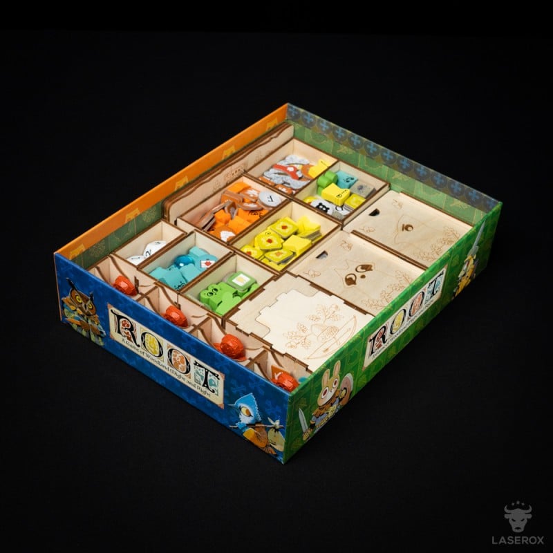 Decide the fate of the forest by fighting as forest factions for opposing goals. But you can only win if you have set up your base and organized everything at home. This organizer is designed to quickly clean up and display the Root base game and Root: The Riverfolk Expansion.