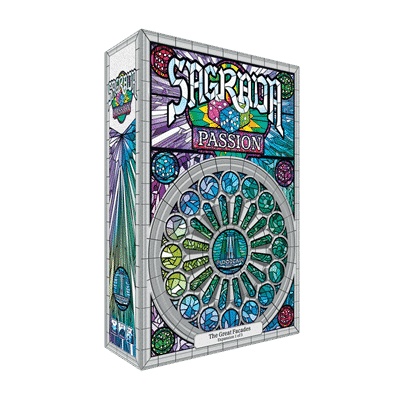 Sagrada: The Great Facades, named after the facades of the Sagrada Familia, is a series of expansions released in three parts: Passion, Life and Glory. Each part of the expansion contains modules of content that players can add to their Sagrada games individually or together. Sagrada: Passion introduces inspiration cards, rare glass dice and cards, rare glass targets, and symmetry targets.