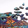 While putting together this unique puzzle you will meet the friends of our scholar Owl. Each piece of the puzzle gradually reveals the owl. You will find a wolf, a fox, a hare, but also a moose and other forest animals.