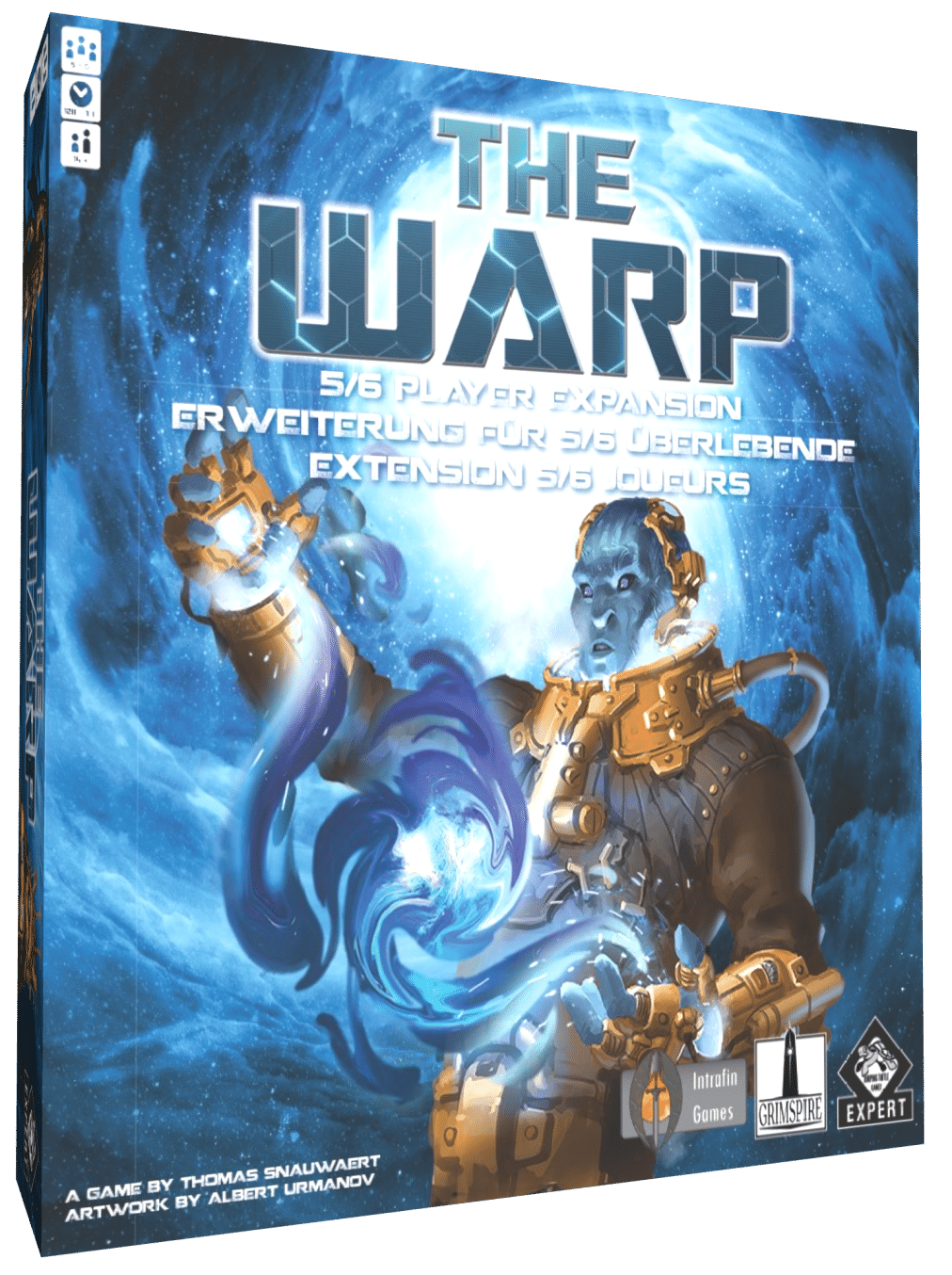 Now you can enjoy The Warp even more by adding up to 2 additional players! The expansion adds all the components for a fifth and sixth player. This way you can enjoy a fully competitive game with 5 or 6 players or you can play the 2 vs 2 vs 2 team mode.