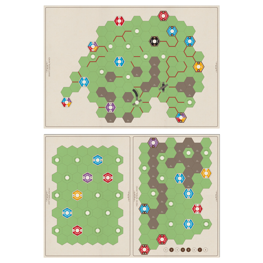 Age of steam Deluxe: Expansion Maps – New England/Pittsburg & Switserland