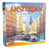 Kom mee naar Amsterdam! De spelers zijn invloedrijke Amsterdamse kooplieden, aan het einde van de 19e eeuw. Ze vervaardigen allerlei goederen, zoals meubels, tegels en kristal en slaan die op in de pakhuizen bij de haven, om ze vervolgens te verhandelen. Door handig de kaarten te gebruiken en slim dobbelstenen te kiezen, krijgen ze waardevolle grondstoffen. Hiermee kunnen ze huizenblokken in bezit nemen, belangrijke gebouwen bouwen, werklieden inhuren en hun schepen door de haven bewegen. Amsterdam wordt gespeeld over 12 rondes die elk uit 4 fases bestaan. In de eerste fase pak je een kaart uit het aanbod en leg je deze in je persoonlijke speelgebied. In de tweede fase worden alle dobbelstenen gegooid en kiezen spelers 2 dobbelstenen. Elke speler pakt het aantal grondstoffen van die dobbelsteen gelijk aan het resultaat. Het resultaat geeft aan hoeveel je er mag pakken, maar ook hoe lang het duurt voordat je de grondstoffen in een ronde kunt gebruiken (draaischijf). Daarna draai je de draaischijf, ontvang je alle grondstoffen van die ronde en mag je acties uitvoeren. Er zijn 8 verschillende acties die in een volgorde en combinatie naar keuze uitgevoerd kunnen worden. Probeer huizenblokken in de stad in bezit te nemen en de gewonnen grondstoffen met je vrachtship naar de verschillende havens te brengen. Door goederen af te leveren ontvang je punten. De huizenblokken leveren aan het einde van het spel punten op. De vooruitgang op de Amstel levert punten op maar draagt ook bij aan de speelvolgorde in de rondes. Door kaarten te activeren ontvang je in je beurt voordelen maar voorkom je ook strafpunten op het moment dat je te veel kaarten onder je spelersbord hebt liggen. Het doel is om zoveel mogelijk munten en punten te verzamelen. Na het uitvoeren van alle acties wordt de ronde afgesloten en na 12 rondes eindigt het spel. De speler met de meeste punten is de winnaar.