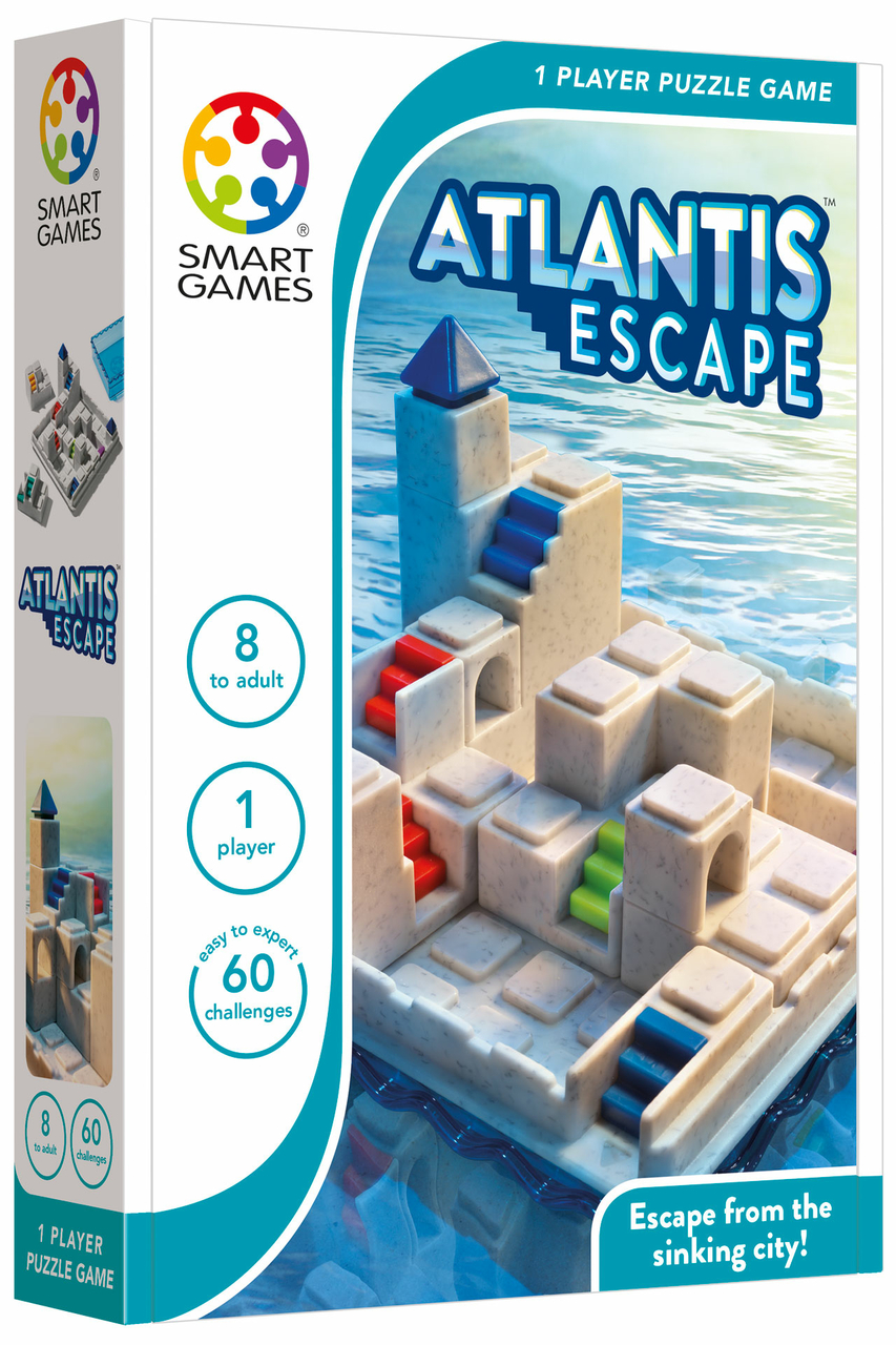 Atlantis Escape is een compact puzzelspel met 60 3D-opdrachten, handig om overal mee te nemen.