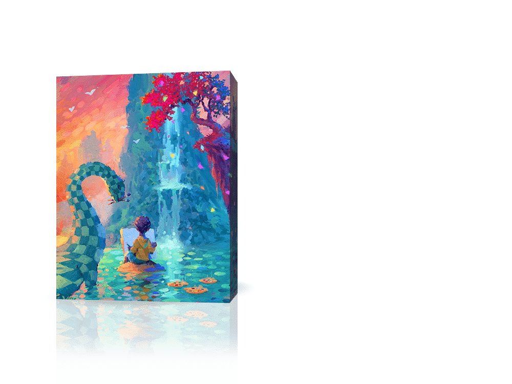 Canvas Reflections Expension – Paint from a new perspective! In Canvas: Reflections, the artistic puzzle has a new layer — Mirror Cards! These reversible cards add deeper strategy, and also give you increased flexibility to string together combinations of Elements. Additionally, the new board offers a wider selection of Art Cards that allows you to better plan ahead and presents more choices even when running low on Inspiration Tokens.