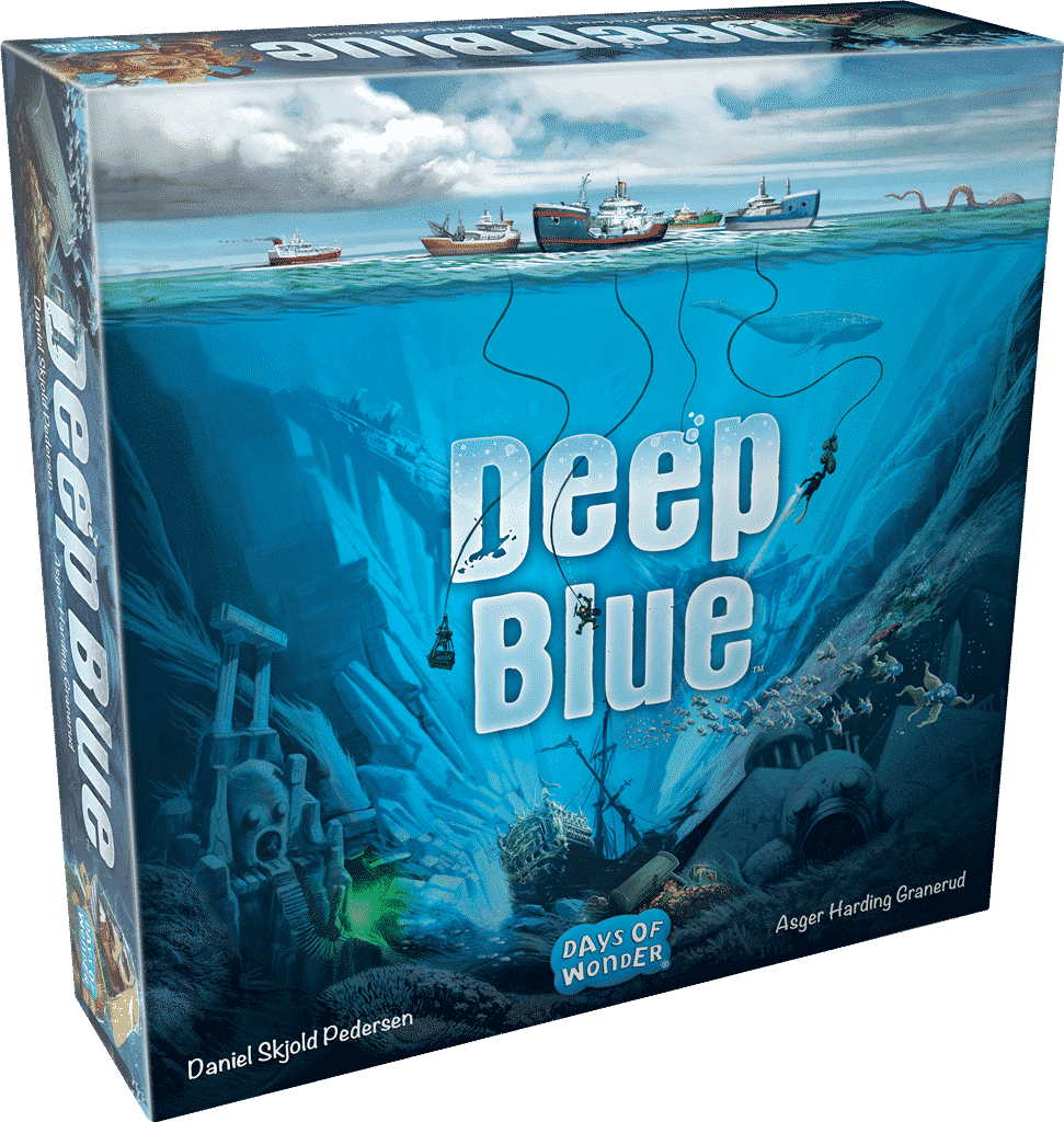 Deep Blue is een familiespel waarin je een gokje waagt om de meeste overwinningspunten te vergaren door naar de juiste scheepswrakken te duiken. Spelers kunnen zich aansluiten bij de duik van een andere speler en er gebruik van maken om schatten mee op te pikken. Verzamel de juiste bemanning met een aantal duikers, zeilers en archeologen, race naar de wraklocaties, eis een goede duikplek op en verken de zeeën om nieuwe wrakken te ontdekken.