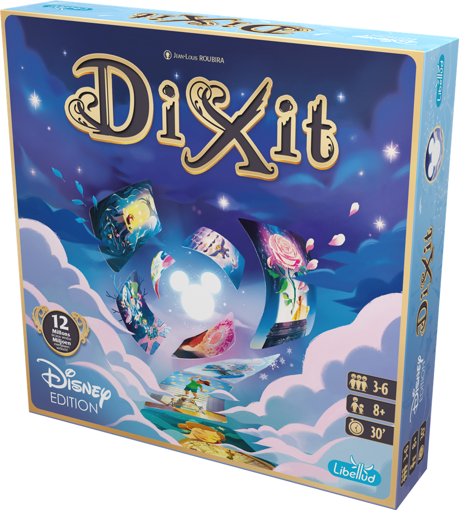 Dixit Disney is een eenvoudig en luchtig bordspel van verhalen vertellen, interpretatie en giswerk. Spelers worden uitgedaagd en blij als ze een reeks kaarten met prachtige Disney-thema’s onthullen. Zoek de link bij een raadselachtige omschrijving voor een van de onthulde kaarten, vind de juiste afbeelding en scoor punten. Met 84 nieuwe kaarten gebaseerd op iconische Disney & Pixar films, van Steamboat Willie tot Turning Red, zal Dixit Disney spelers boeien.