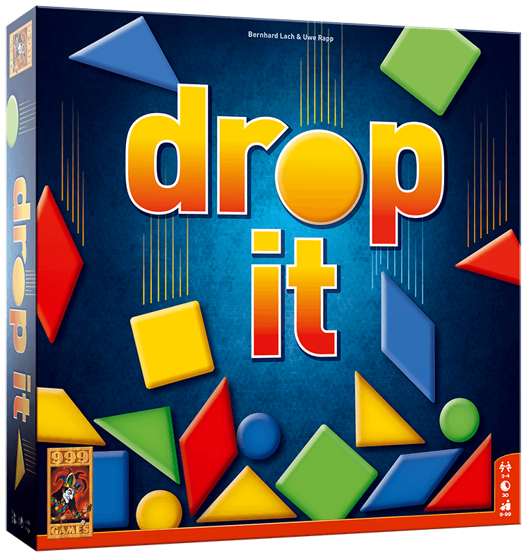 Tactisch behendigheidsspel. Laat om beurten 1 speelstuk in de opening van het speelbord vallen en scoor punten voor de hoogste verdieping waar het speelstuk eindigt. Ook voor het raken van speciale locaties krijg je punten. Maar pas op: breek geen taboes! Het is namelijk niet toegestaan om gelijke vormen of kleuren met het ingeworpen speelstuk te raken. Gebeurt dat toch, dan verdien je deze beurt geen punten. Wie uiteindelijk de meeste punten heeft, wint het spel. Drop it is een zeer toegankelijk spel voor de hele familie. Door de eenvoudige spelregels ben je binnen een minuut aan het spelen. De handleiding bevat naast de basisspelregels onder andere een teamvariant en een variant met kleuren.