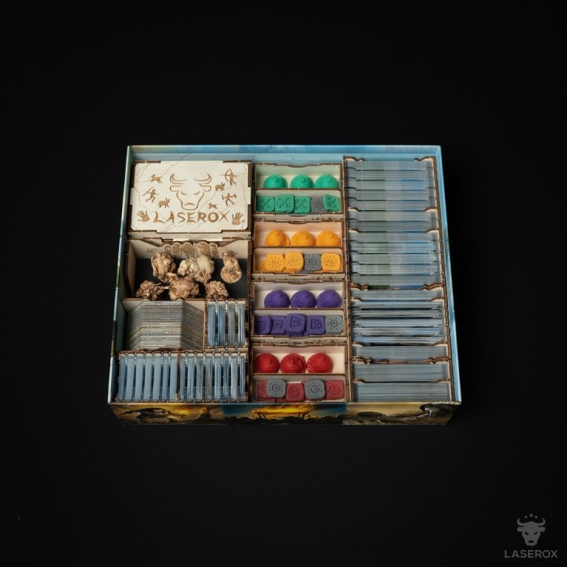 Om je te helpen bij je eerste stappen op het ijzige land, hebben we de Endless Winter Organizer ontworpen. Hierin worden alle spelonderdelen netjes opgeborgen in de speldoos en gaat het opzetten en opruimen sneller, zodat je meer tijd hebt om van het spel zelf te genieten. Je hebt snel toegang tot alle spelerscomponenten in de daarvoor bestemde lade. Pak de het tokenbakje en alle tokens zijn in een paar eenvoudige bewegingen op hun plaats, en met de gegraveerde pictogrammen op elke sleuf van de kaarthouders vind je in een paar seconden de kaarten die je zoekt in de enorme hoeveelheid kaarten.