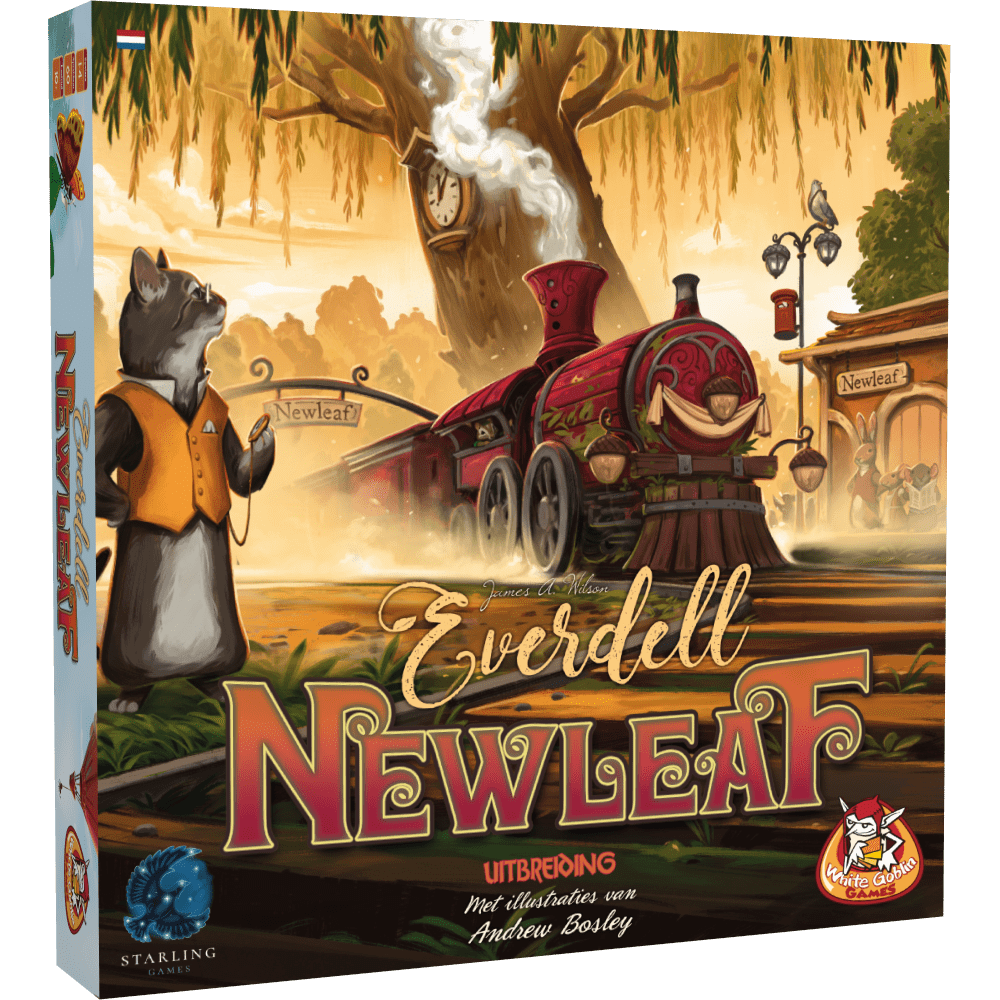 Met de Everdell-uitbreiding Newleaf voeg je een treinstation toe aan je basisspel. Het nieuwe treinstation van Everdell’s grootste en oudste stad Newleaf draait op volle toeren. Dagelijks vind je er nieuwe wezens, gebouwen en andere hulpmiddelen om toe te voegen aan je stad. Maar vergeet niet om je reservering te plaatsen, want alleen zo reis je verder met treinkaarten en maak je optimaal gebruik van de vele mogelijkheden van de meest welvarende stad die Everdell ooit heeft gezien.