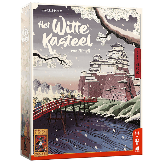 Japan, 1761: de provincie Harima. Daimyo Sakai Tadazumi is één van de belangrijkste adviseurs van het Tokugawa-shogunaat, dat de scepter zwaait over de regio van het Himeji-kasteel. Het is dus in het belang van de verschillende lokale stammen om in een goed daglicht bij de Sakai-stam te staan. Om invloed te bemachtigen, moeten ze leden van hun familie op elk niveau binnen het Witte Kasteel zien te krijgen. In Het Witte Kasteel kruip je in de huid van een leider van een kleine stam. Je strijdt om de positie en toekomst van je stam in het hof van de Witte Reiger. Listig en nauwkeurig resource management en het huisvesten van familieleden binnen het Himeji-kasteel vormen de sleutel naar de winst! Wie aan de beurt is, kiest een dobbelsteen van één van de drie bruggen en zet die op het speelbord of zijn eigen tableau in. De waarde van de dobbelsteen die hij daarmee bedekt bepaalt of hij daar geld voor moet betalen of juist krijgt. Voor het kiezen van een lage dobbelsteen krijg je een bonus, die in de loop van het spel steeds aantrekkelijker wordt. Daarna voer je de acties uit die bij het betreffende veld horen. De verschillende grondgebieden, zoals de bron, de trainingsterreinen en het kasteel bieden verschillende actiemogelijkheden. Zo kun je munten, daimyozegels en grondstoffen ontvangen, maar ook tuinmannen installeren of stamleden als hovelingen op de sociale ladder binnen het kasteel laten klimmen totdat ze misschien wel de etage van de daimyo bereiken. Tijdens het spel scoor je al wat punten, maar het is vooral te doen om de situatie aan het einde. Dan leveren je hovelingen op verschillende manieren punten op. Omdat de dobbelstenen op de bruggen en de dobbelsteentegels op het speelbord altijd willekeurig worden gedobbeld en gelegd, is de uitgangspositie elk spel anders. Hetzelfde geldt voor de acties die op de verschillende plekken beschikbaar zijn. Daardoor blijft Het Witte Kasteel van Himeji altijd verrassend en uitdagend.
