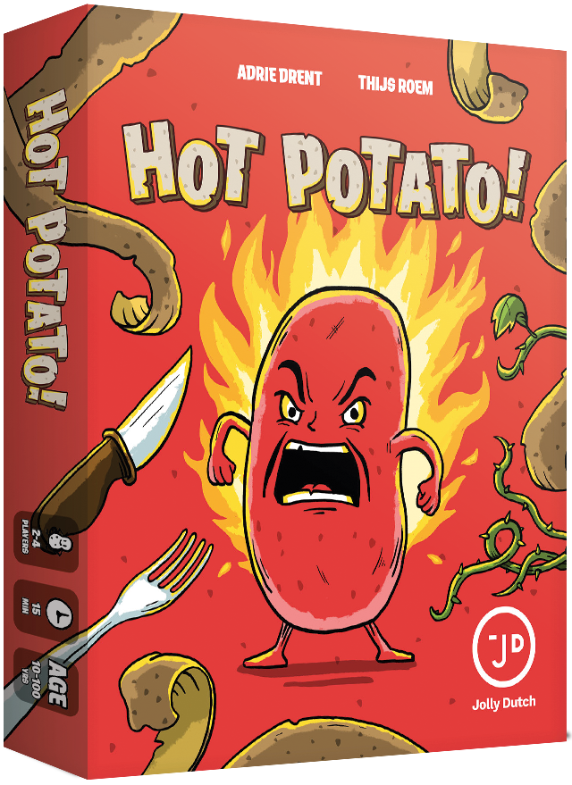 In dit unieke aardappelkaartspel boek je winst door het overwinnen van slijmerige slakken, vette frituurpannen en woeste aardappelstampers. Hot Potato! is een twee- tot vierpersoonskaartspel. In vijftien minuten kom je verschillende aardappelvreters tegen: van een ‘furious fryer’ tot een ‘nasty knife’ en van een ‘slimy slug’ tot een ‘sneaky slicer’. Het doel van het spel is om tactisch je overwinning te boeken: door de anderen te pesten, de Hot Potato! naar een ander toe te schieten en om jezelf te beschermen tegen aanvallen. Wie het eerst 10 punten heeft, wint het spel.