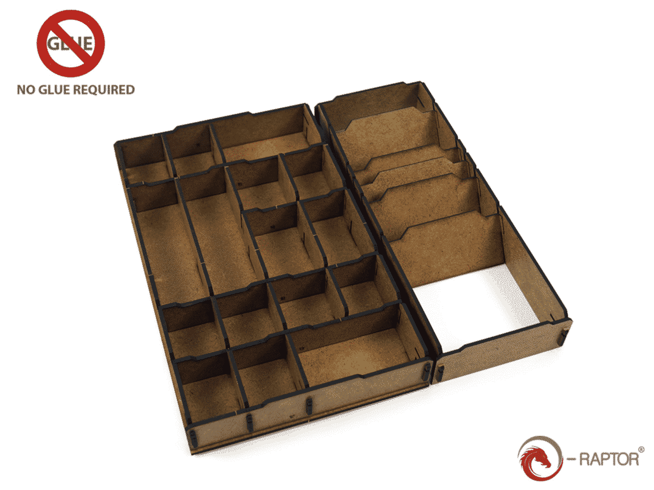 e-Raptor-insert voor Terraforming Mars is ontworpen om de opslag- en game-ervaring te verbeteren. Met de inzet kunnen alle componenten van het basisspel veilig worden opgeborgen en gerangschikt – geen chaos meer in de doos of op de tafel, geen onnodig zoeken naar materiaal tijdens het spel. Er is ook nog wat ruimte over voor komende uitbreiding. De inzet past in de doos met alle atributen met een sluitende doos. Het is stabiel en bestaat uit vezelplaat met een hoge dichtheid. Voor de montage is geen lijm nodig.