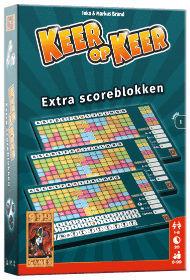 Extra aanvullende scoreblokken(3) voor fanatieke Keer op Keer-spelers. In de doos zitten drie blokken van 'Level 1' die identiek zijn aan die in het basisspel.