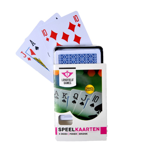 Een set kaarten zorgt voor uren speelplezier, is voor allerlei verschillende spellen te gebruiken én is nog lekker compact ook. Deze set speelkaarten van het merk Longfield Games is gemaakt van 100% plastic en heeft een klassieke bedrukking.