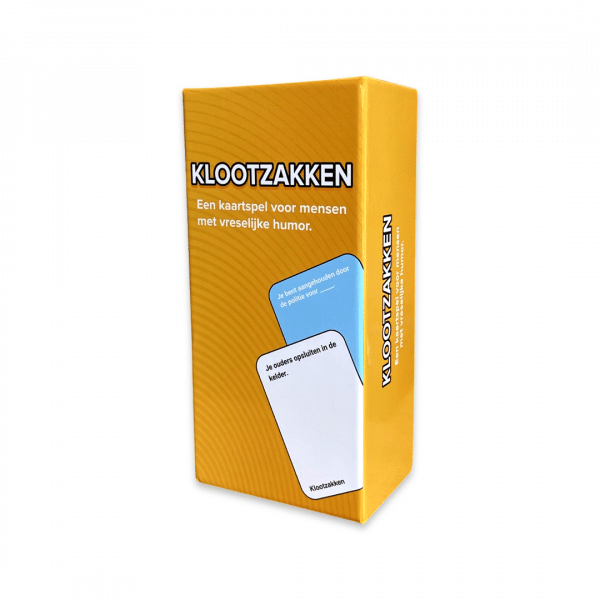 Klootzakken is een humoristisch kaartspel die de duistere kant van iedere speler naar boven laat komen. Het spel bevat vreselijke Nederlandse humor over boomers, Hiv naalden in treinstoelen en bitterballen van paardenvlees. Bij Klootzakken kan het allemaal.