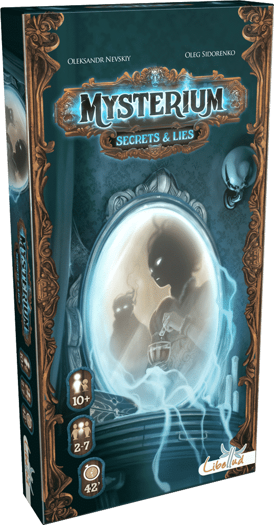 Het spookachtige landgoed verbergt een verontrustend verledenÉ Onderzoek de vreemde gebeurtenissen die vlak voor de dood van de geest plaatsvonden in Secrets & Lies, de tweede uitbreiding voor het coperatieve bordspel Mysterium. De mediums moeten hun gaven inzetten om deze verontrustende voorvallen op te helderen, aan de hand van 18 nieuwe verhaalkaarten. De geest beschikt over 42 nieuwe visioenkaarten om de mediums te helpen bij hun onderzoek naar geheel nieuwe verdachten, locaties en voorwerpen (6 van elk).