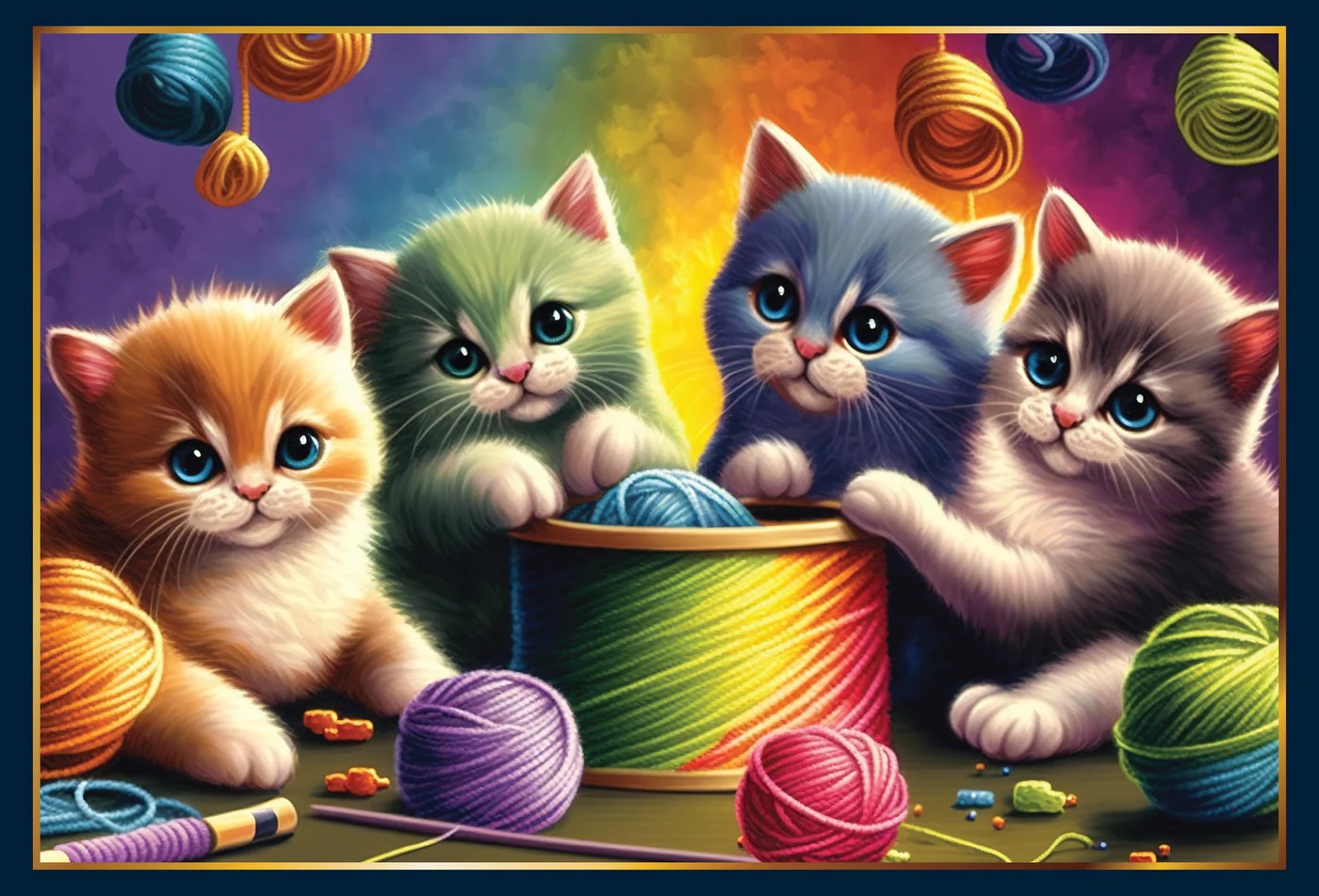 Met de Kittens met Garenpuzzel beleef je urenlang puzzelplezier. Geniet van de prachtige kleuren en schattige katten terwijl je je verbeelding prikkelt en je geest ontspant. Het is een puzzel die je keer op keer zult willen maken en die je altijd zal verrassen met zijn schoonheid.