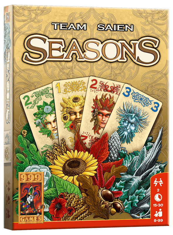 Seasons is een kaartspel voor 2 spelers, dat met eenvoudige, intuïtieve spelregels toch moeilijke beslissingen en een gespannen duel creëert. Tegelijkertijd is er voldoende verborgen informatie om te kunnen bluffen en je tegenstander herhaaldelijk in hachelijke situaties te brengen.