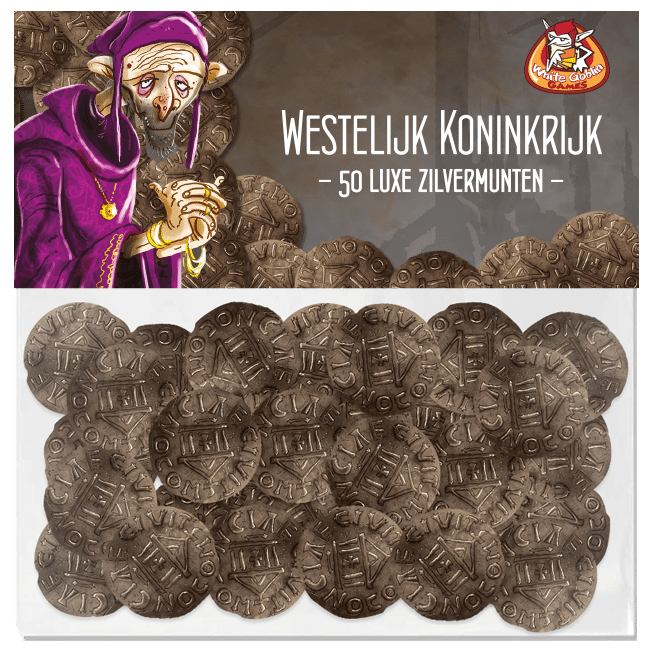50 luxe (metalen) munten die je kunt gebruiken in de diverse spellen van de WESTELIJK KONINKRIJK trilogie: