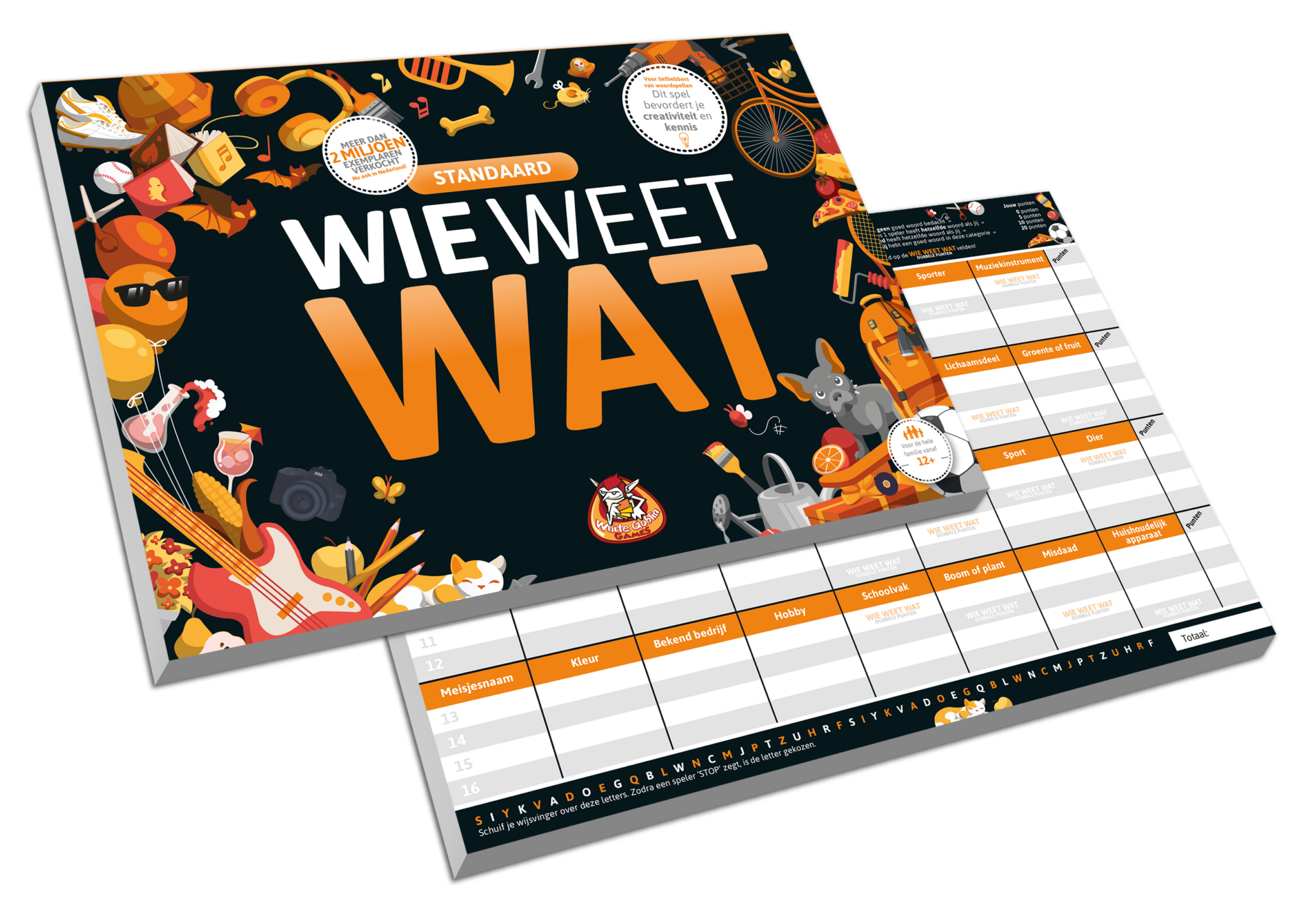 In Wie Weet Wat krijgt elke speler een blad waarop verschillende categorieën staan. Het spel begint zodra er een letter uit de letterbalk gekozen is. Daarna wordt de eerste rij gespeeld en moet je zo snel mogelijk elke categorie invullen met een woord dat begint met de gekozen letter. Dit gaat verder totdat je alle rijen zijn gevuld. Daarna worden de punten bij elkaar op geteld. De speler met de meeste punten wint Wie Weet Wat.