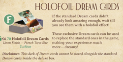 Vervang de standaard droomkaarten door deze ‘glimmende’ holofoilkaarten, om je speelervaring nog luxer te maken. Deze upgrade zit niet in de Collectors Box, wel in ons all-in pakket.